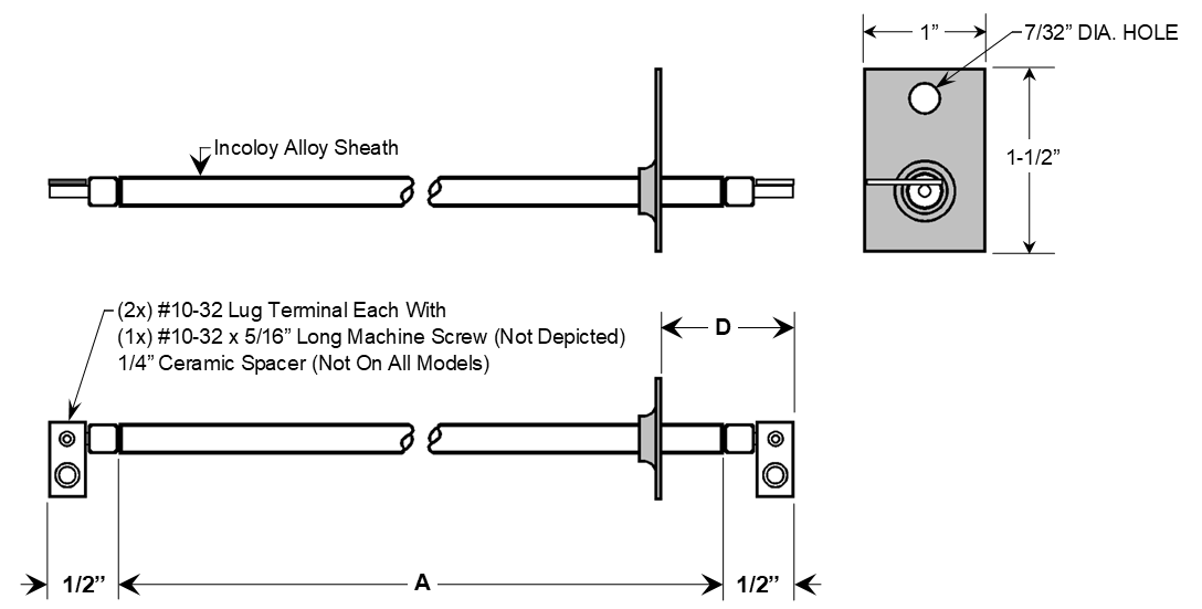 IMPORTANT NOTE - This element is 0.260" diameter which is larger than the OEM diameter of 0.200". This will not fit the OEM equipment unless the enclosure mounting holes are enlarged accordingly, which is why the price on these units is so low and affordable! Additionally, the larger diameter lowers the watt density, resulting in longer expected life of the element!