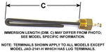 JAO-25X1-H Model: 2560W @ 254V 1-Phase, 9" Immersion Length Jackson Dishwasher Booster Immersion Elements, 1" MPT Screw Plug
