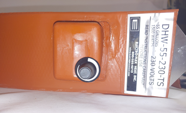 Model DHW-55-230-TS: 1.5kW, 230VAC, Silicone Rubber Heater For 55-Gallon Metal Drum With 50°-425°F Thermostat Control - 4" Wide